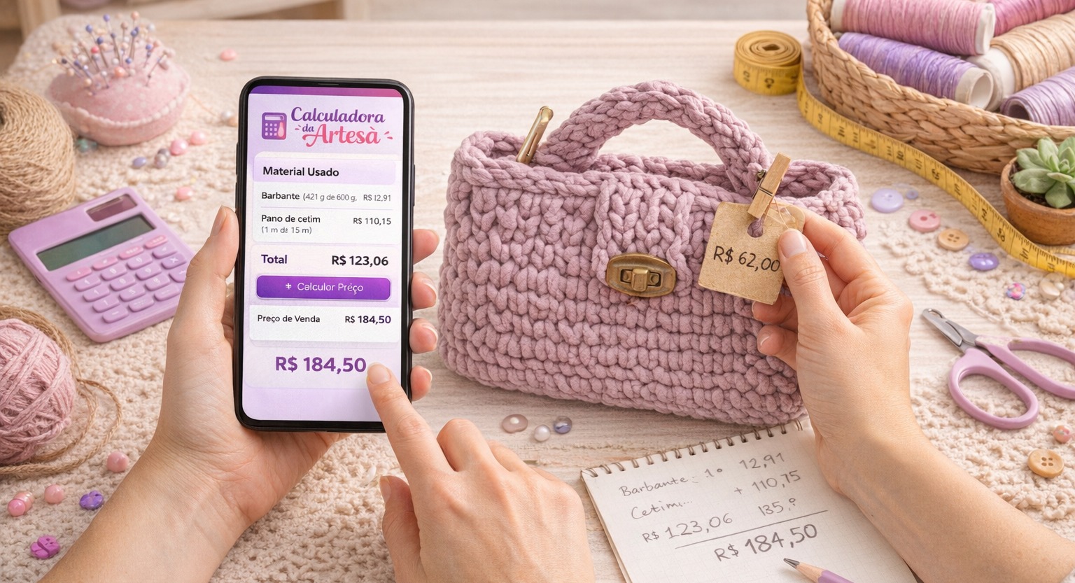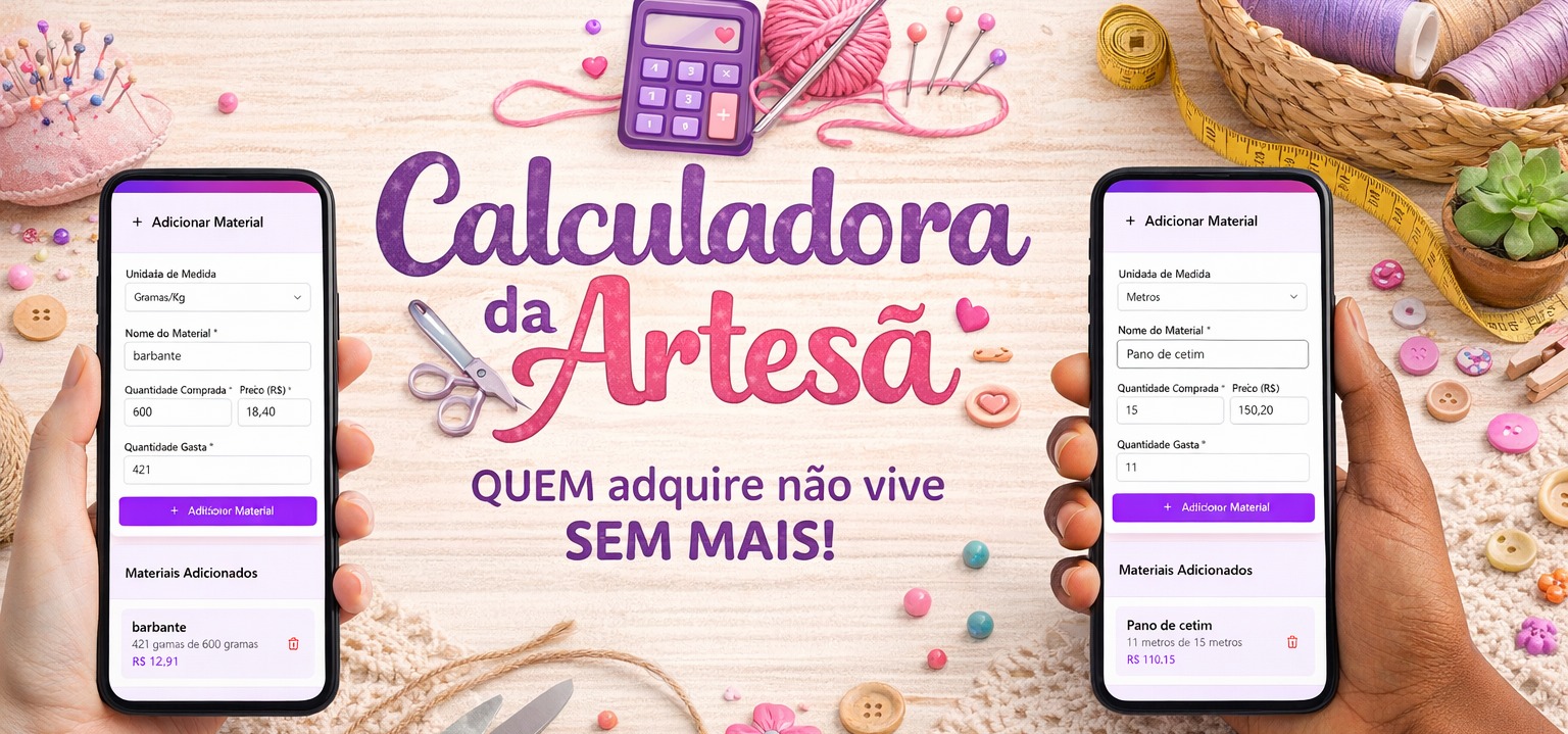 A Calculadora da Artesã é uma ferramenta digital pensada especialmente para quem trabalha com artesanato e precisa saber exatamente quanto cobrar por cada peça.